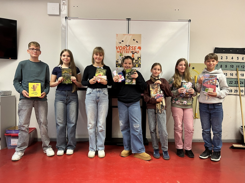 Beim diesjährigen Schulentscheid des Vorlesewettbewerbs für die Klassenstufe 6 am 17.11.2025 traten sieben Teilnehmerinnen und Teilnehmer an, die sich zuvor bereits in ihren jeweiligen Klassen durchgesetzt hatten.