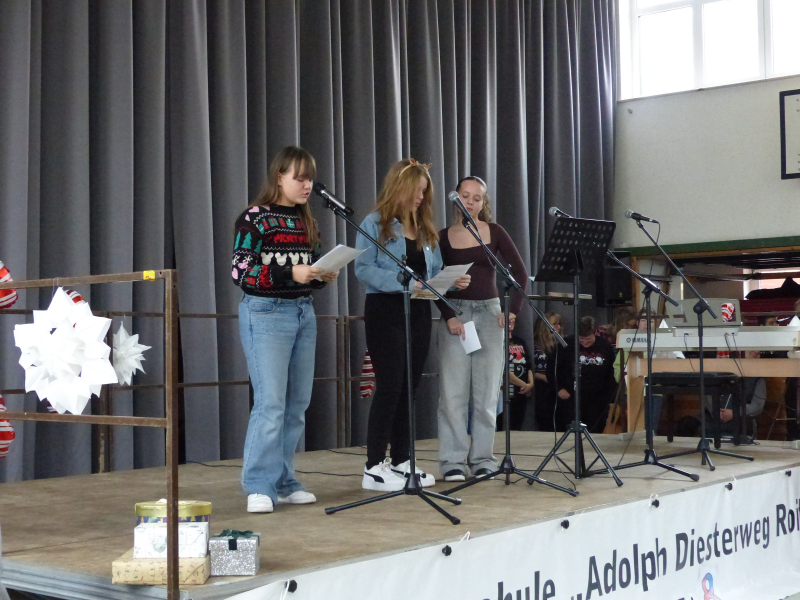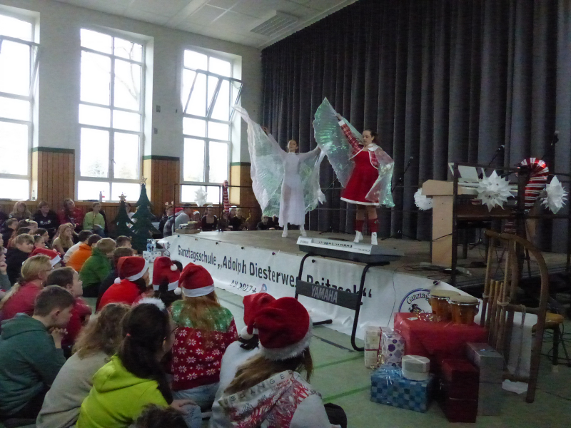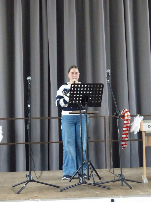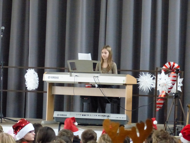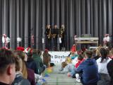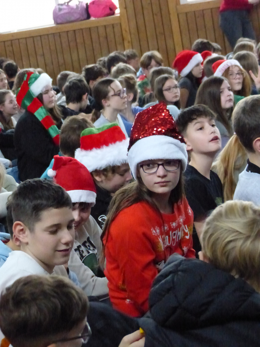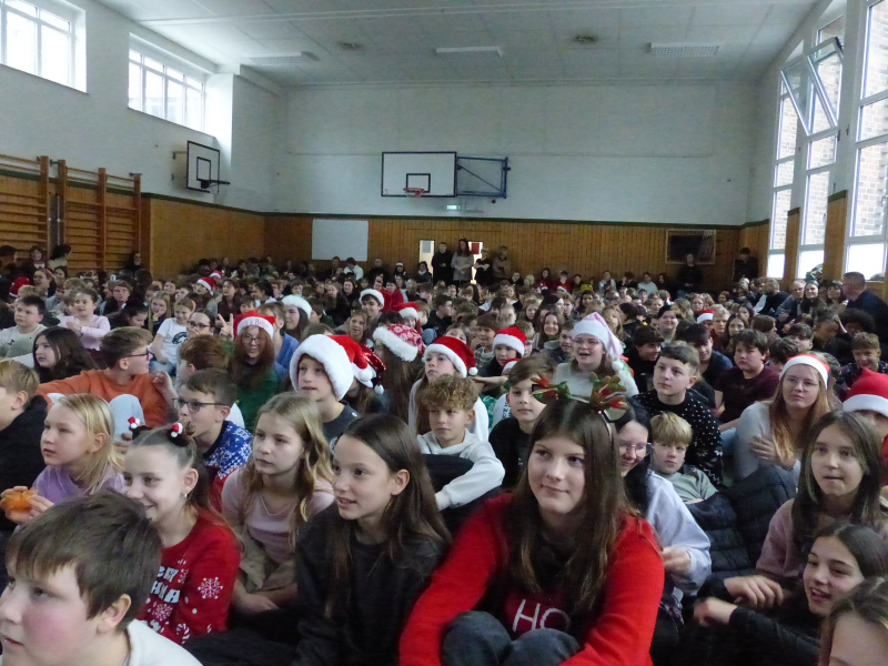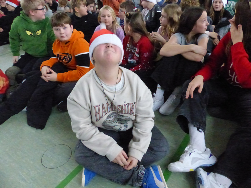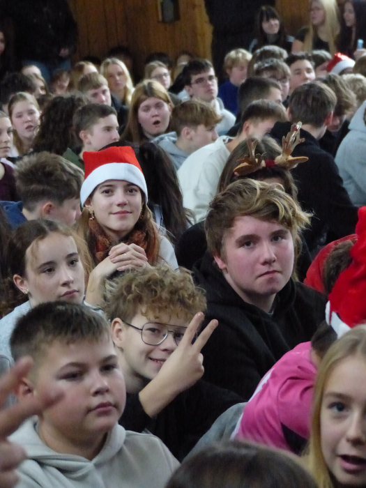 Unter dem Motto „Du bist das Licht“ strömte die ganze Schulgemeinschaft am letzten Schultag des Jahres mit Sitzkissen im Weihnachtpullover oder mit roter Zipfelmütze in die bis auf den letzten Platz gefüllte Turnhalle, um gemeinsam das traditionelle Weihnachtskonzert unserer Schule zu erleben.